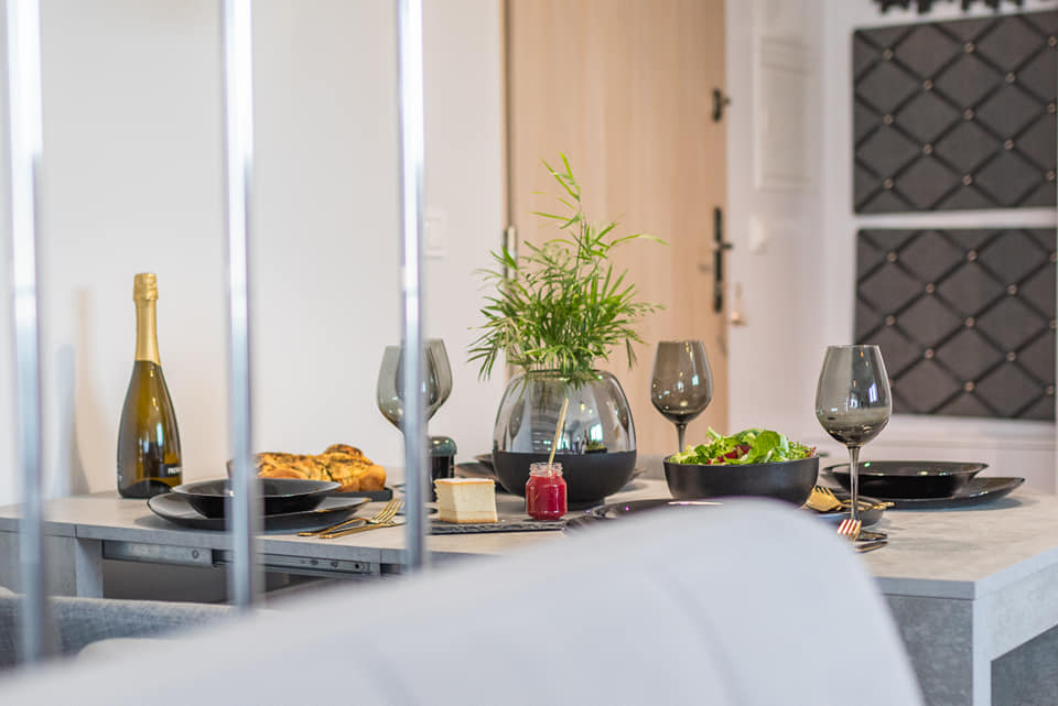 Apartament oferuje również taras, gdzie możesz delektować się pięknymi widokami i świeżym powietrzem. Aby uzupełnić Twój pobyt, każdy gość otrzymuje butelkę wyśmienitego wina, by jeszcze bardziej celebrować swoje doświadczenie.